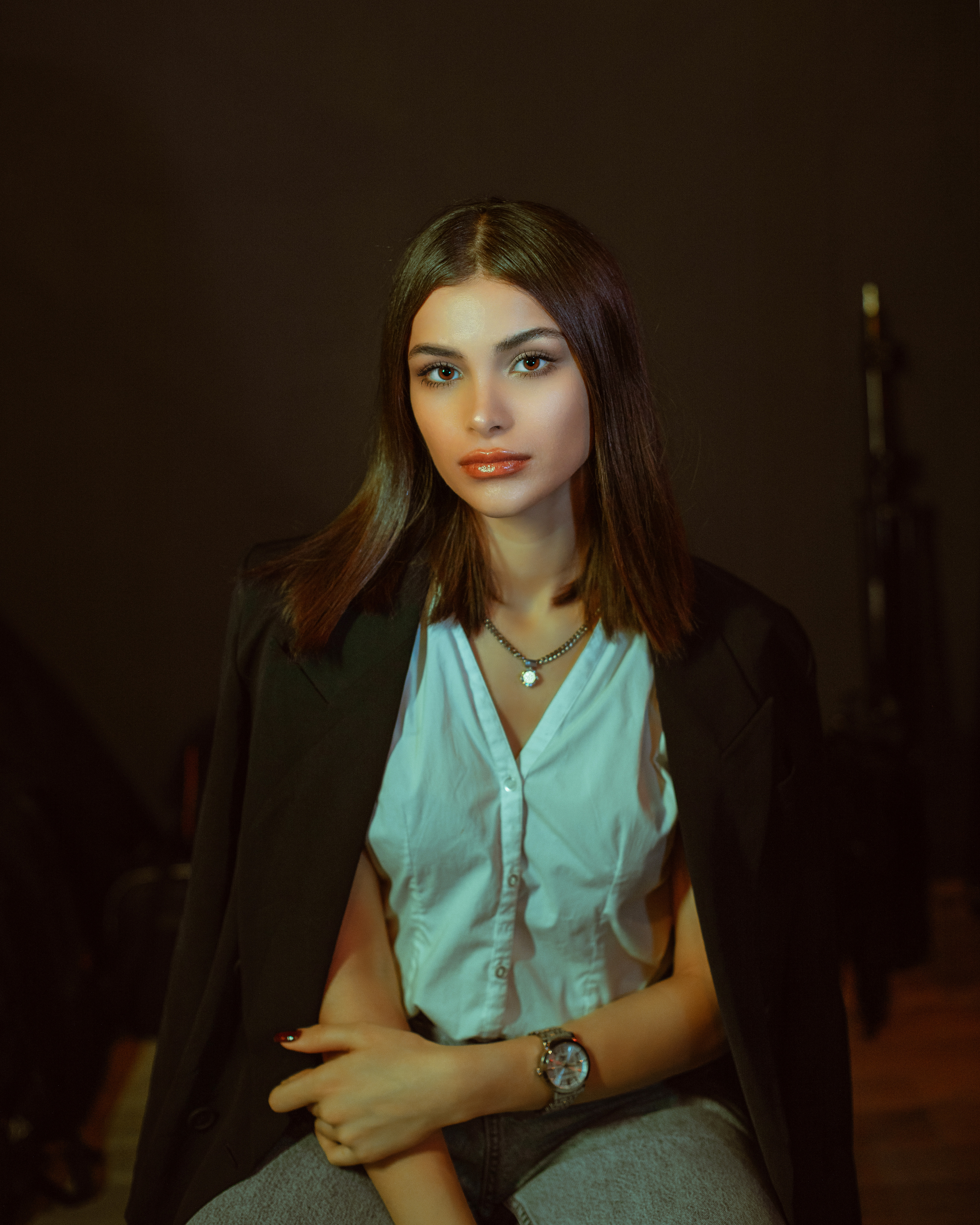 lost in thought, holding her classic camera, capturing the moment in her mind.